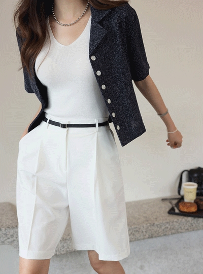 카울 하이웨스트 벨티드 백밴딩 5부 팬츠