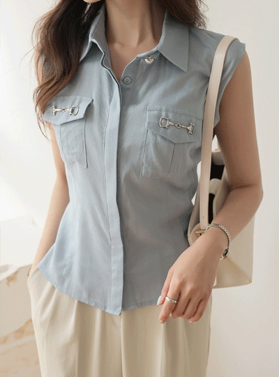 실버 홀스빗 슬리브리스 블라우스