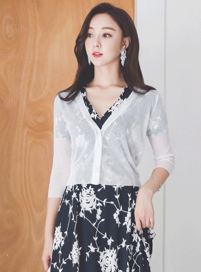 백레이스 브이넥 미니 가디건