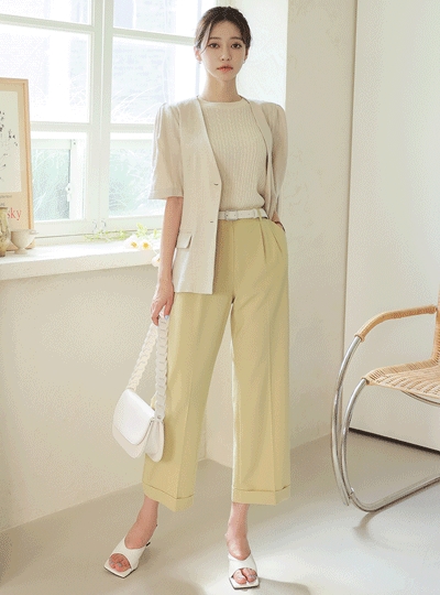 린넨 블렌드 백밴딩 핀턱 카브라 슬랙스