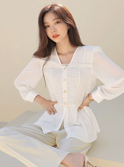 소프트 나염 쉬폰 차이나넥 블라우스