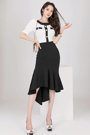 배색퍼프 원피스