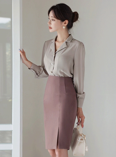 베리어스 버튼 더블카라 블라우스