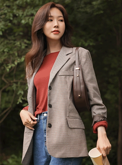 어텀 스페인 체크 쓰리버튼 자켓