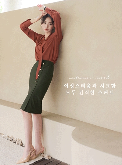 어텀 사이드 절개 골드버튼 스판 스커트
