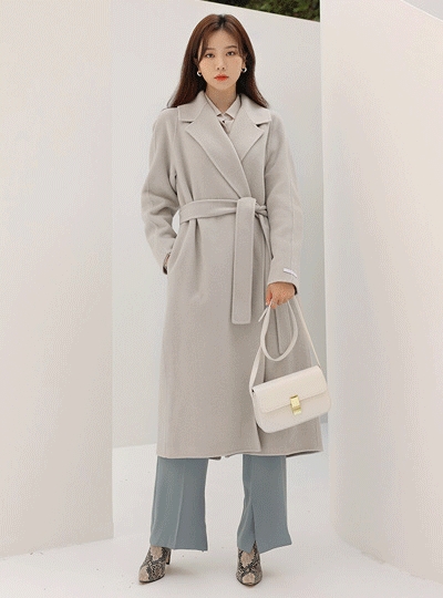 울 벨티드 오픈카라 핸드메이드 롱 코트