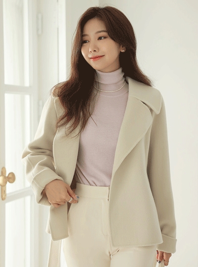 오리지널 울 핸드메이드 와이드 카라 하프 코트
