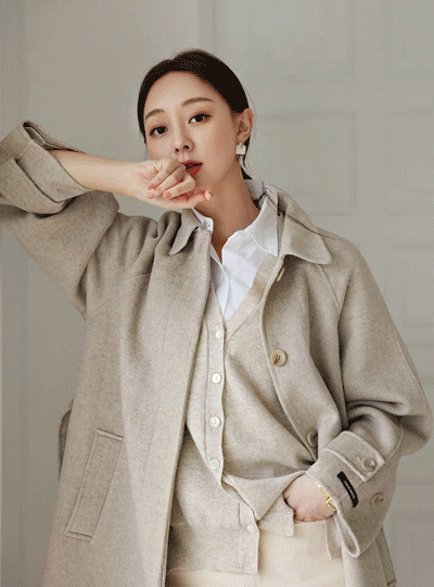 싱글카라 히든버튼 핸드메이드 울 코트