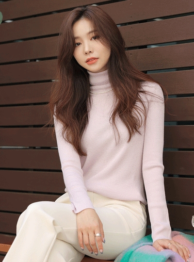 소프트 터칭 크리미 컬러 골지 울 폴라티