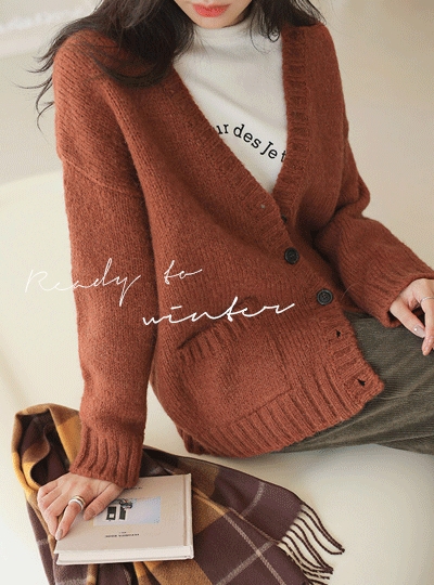 폭신 베이직 Y넥 루즈핏 울 가디건