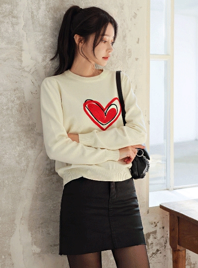 트리플 하트 자수 니트티