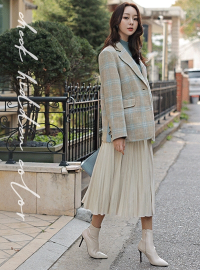 팝컬러 체크 히든배색 핸드메이드 울자켓