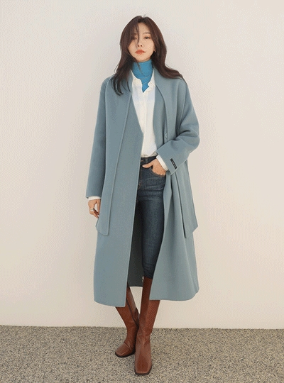 핸드메이드 히든 스냅버튼 울 롱코트(머플러SET)