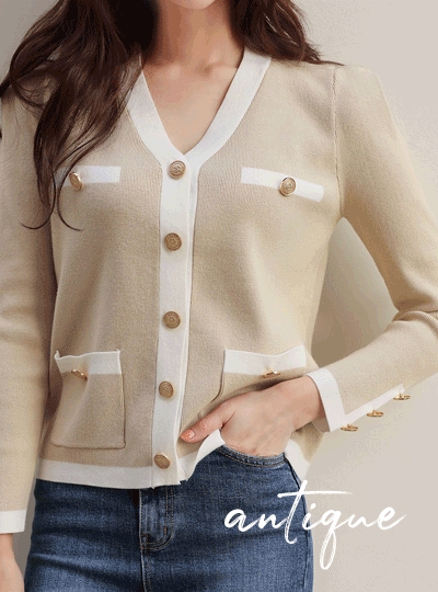 앤티크 골드버튼 트리밍 엣지숄더 가디건
