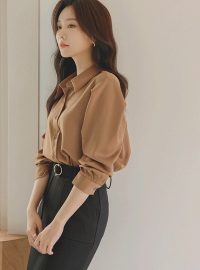 글로시 새틴 숄더 핀턱 싱글카라 블라우스