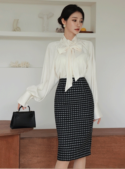 스노잉 체크 슬림 H라인 울 스커트