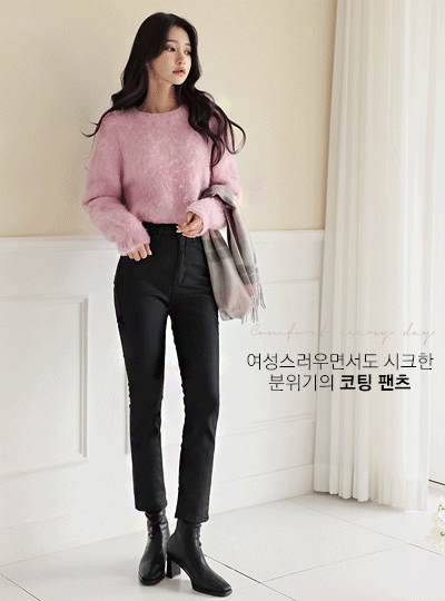 하이라이즈 슬림 일자 코팅 팬츠(기모안감)