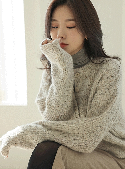 믹스컬러 포인트 울&알파카 부클 가디건