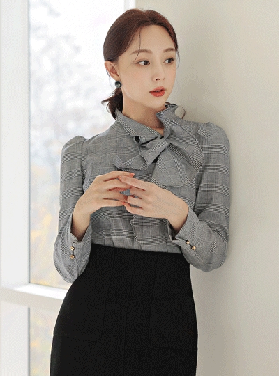루이프릴 타탄체크 블라우스