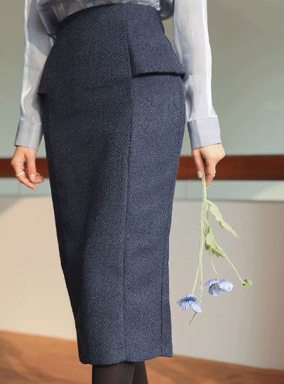 사이드 페플럼 리브 트위드 스커트