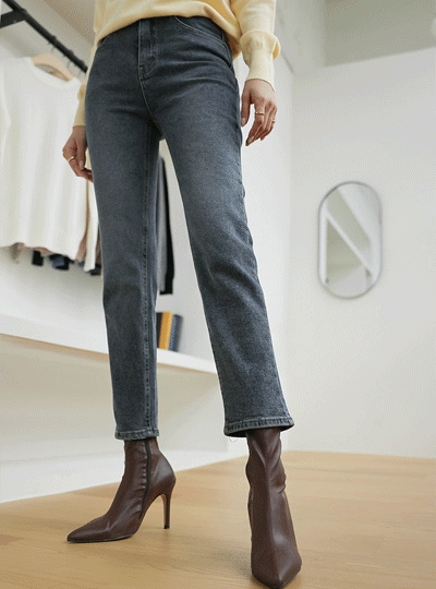 빈티지 워싱 슬림 일자핏 기모 데님팬츠