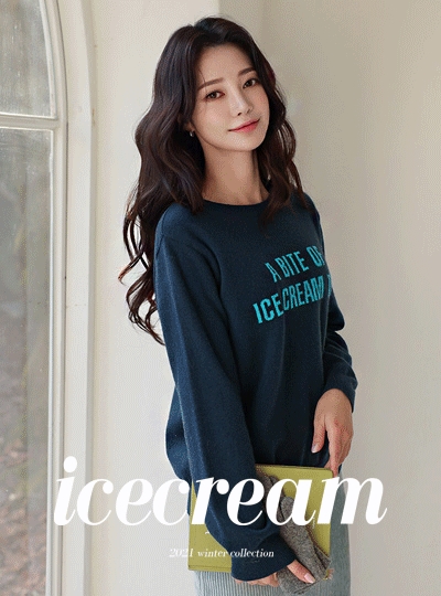 비비드 아이스크림 레터링 울 니트티