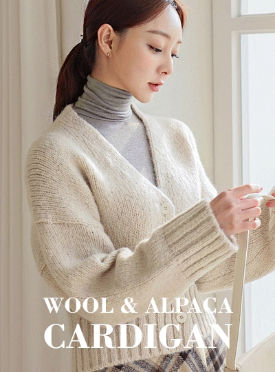 쓰리 버튼 울&알파카 가디건