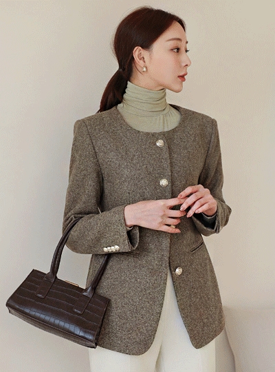 스퀘어넥 골드 버튼 울 자켓(누빔안감)