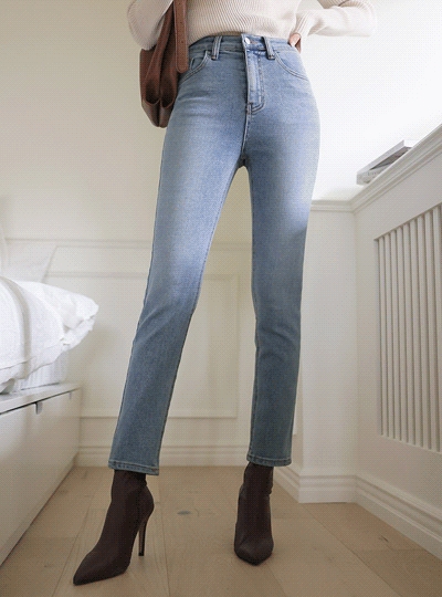 라이트 컬러 쫀쫀 스키니핏 데님 팬츠(기모안감)
