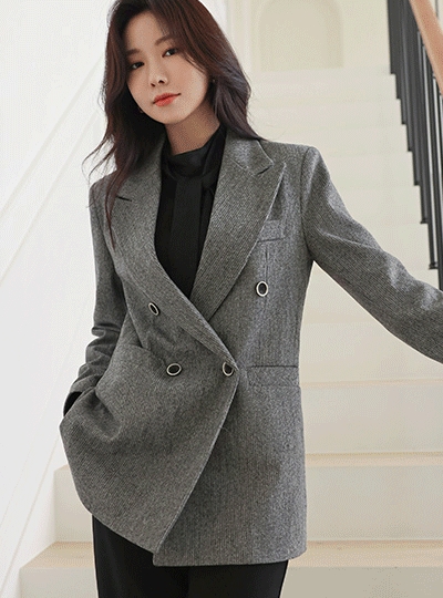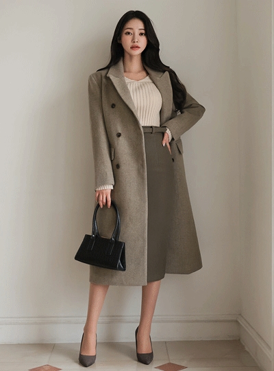 헤링본 미니멀 더블버튼 롱코트(2온스)