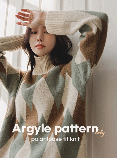 아가일 패턴 폴라 루즈핏 니트