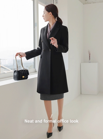 클래식 카라배색 미디 울 코트