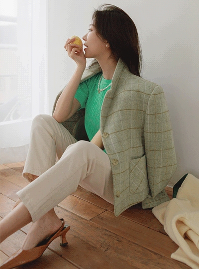 파스텔 컬러 더블 체크 울 자켓