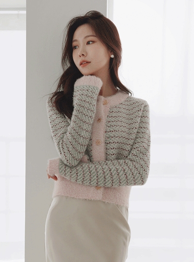 날개사 여리 골드 펄 트위드 가디건