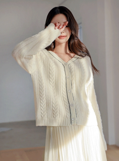 모헤어 울 배색 라이닝 꽈배기 니트 가디건
