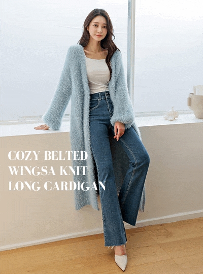 포근 벨티드 날개사 니트 롱 가디건
