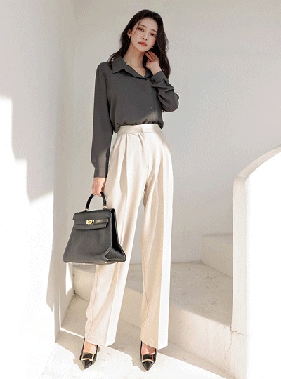 무드 더블 핀턱 스판 와이드 슬랙스(2 type)