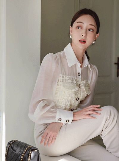 샤 프린지 시스루 블라우스