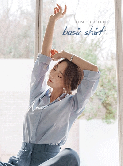 베이직 쫀쫀 텍스쳐 히든버튼 셔츠
