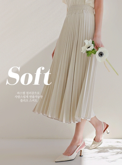 소프트 플리츠 밴딩 롱 스커트