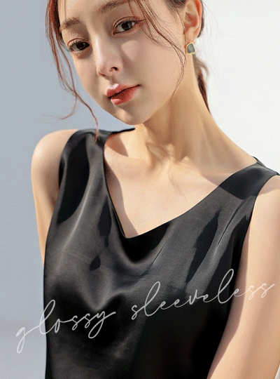 브이넥 새틴 글로시 나시 블라우스