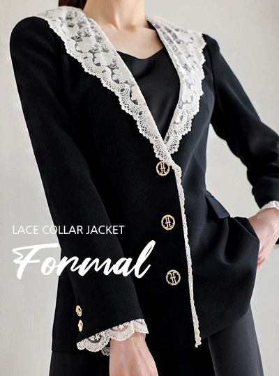포멀 배색 레이스 카라 자켓