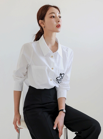 로프 자수 레터링 골드버튼 셔츠 블라우스