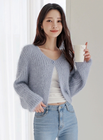포근 솔잎사 원버튼 가디건