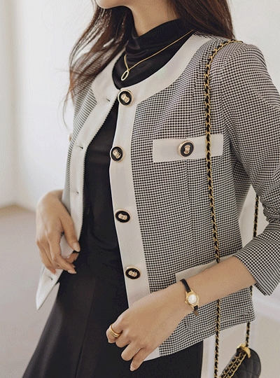 라인배색 체크 포인트 코코 자켓