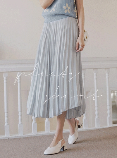 하늘하늘 로맨틱 컬러 백밴딩 플리츠 롱 스커트
