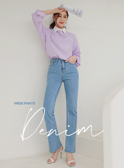 레직기 롱 세미 와이드 데님 팬츠