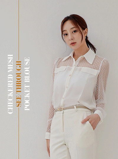 브이넥 골딩 진주 포인트 블라우스(Spring)