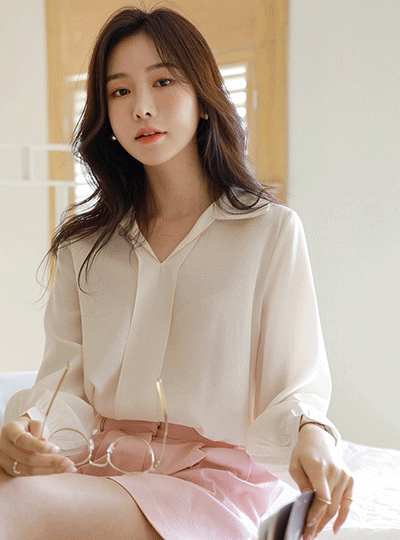 로맨틱 모달 브이 카라 노버튼 블라우스