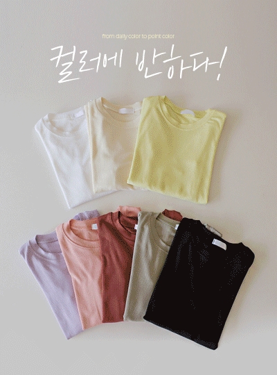 치즈 스판 골지 5부소매 티셔츠